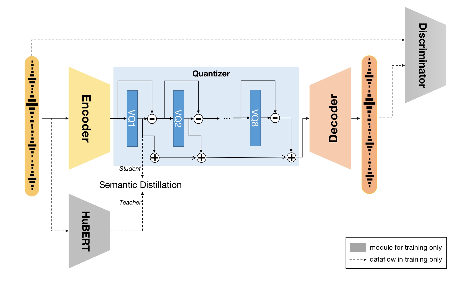 We provide example training scripts in [scripts/train_example.sh](scripts/train_example.sh). All arguments for SpeechTokenizerTrainer are defined in [config/spt_base_cfg.json](config/spt_base_cfg.json). Below, we explain some of the important arguments: